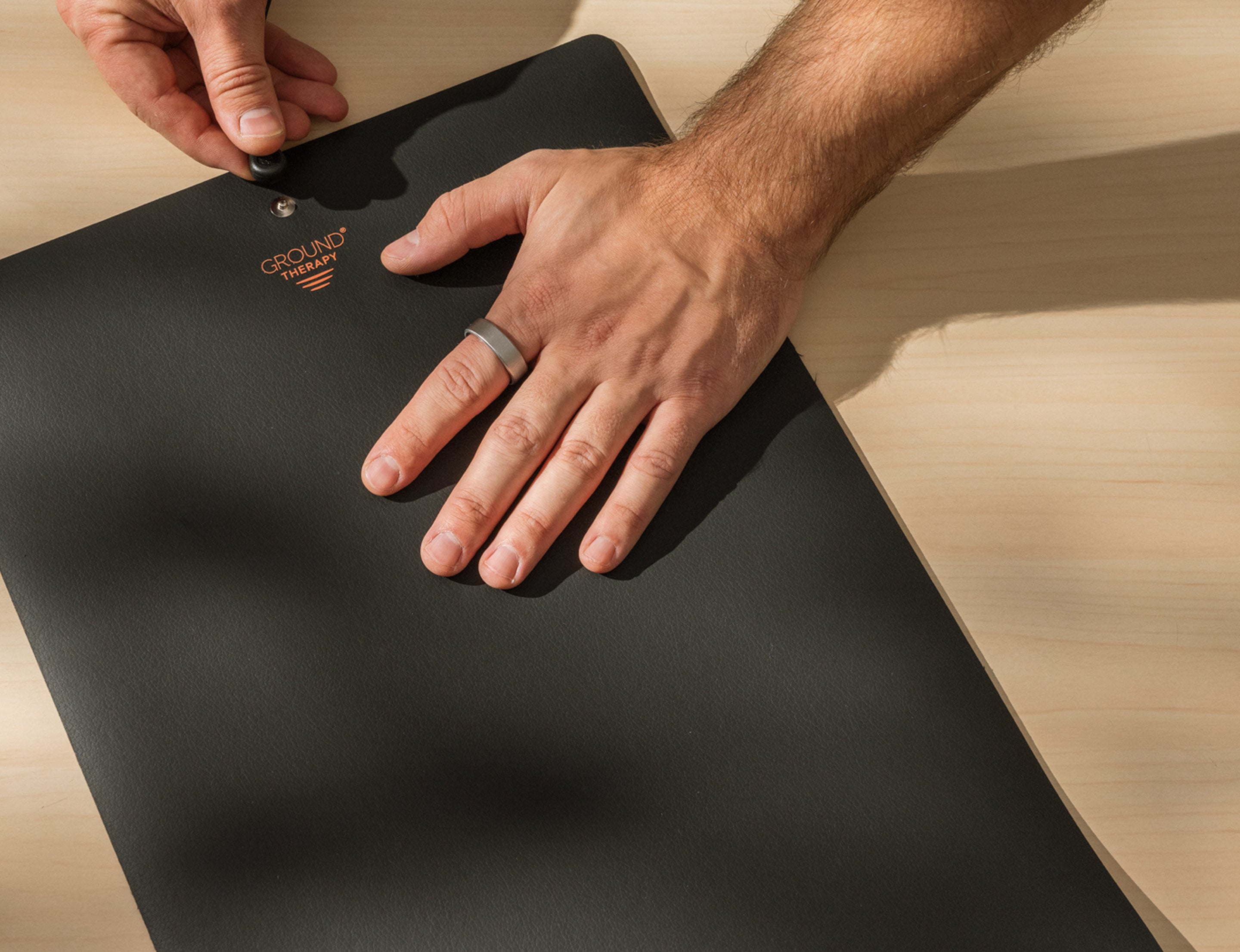 Notre tapis universel Ground Therapy, un best-seller, offre une grande polyvalence et s'utilise partout, au bureau comme à la maison. Installez-le dans votre fauteuil préféré, faites la vaisselle ou cuisinez. Son matériau de mise à la terre exclusif à base de carbone est le fruit de vingt ans de recherche.